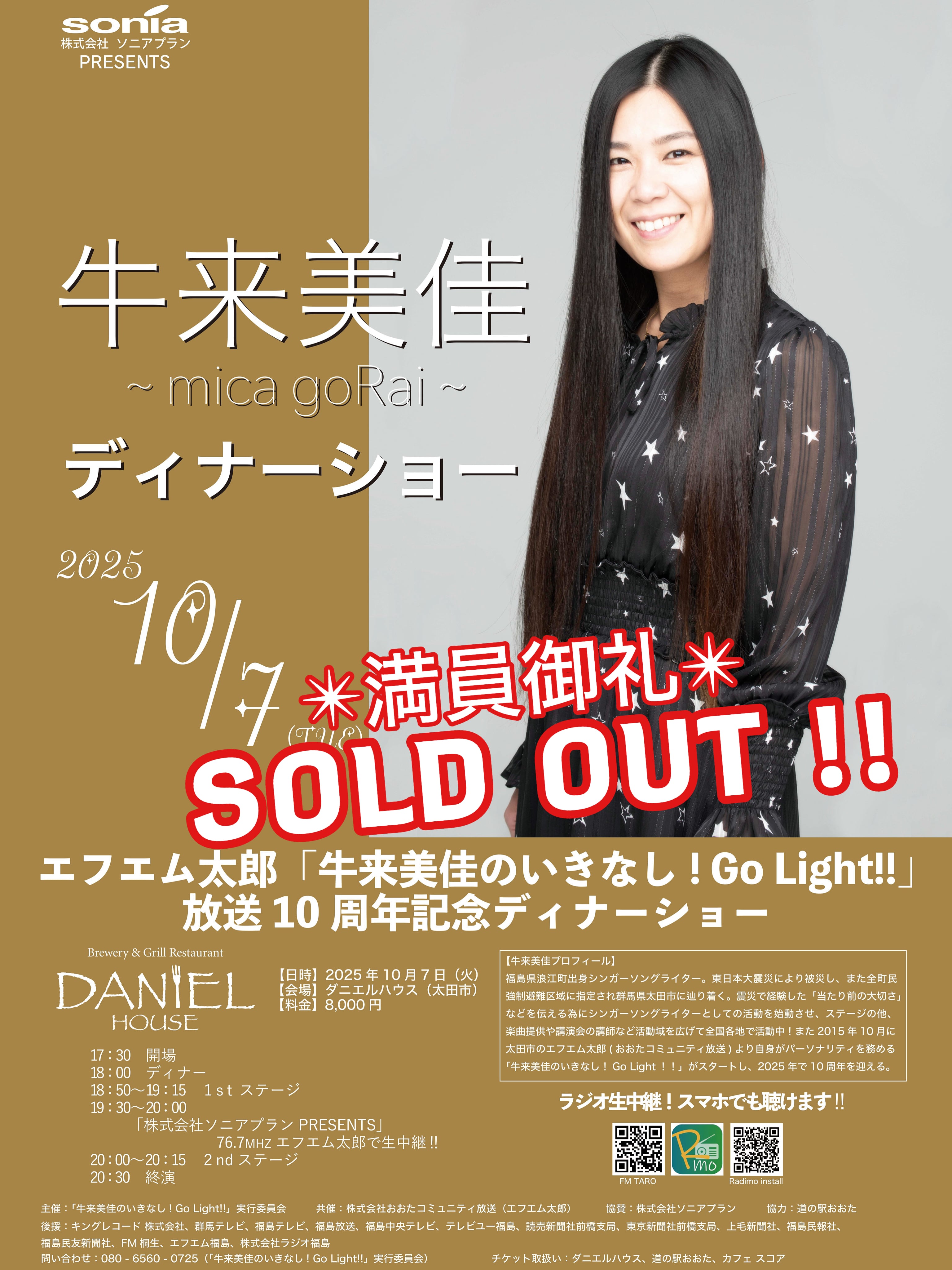 【チケット】牛来美佳ラジオ生中継&ディナーショー